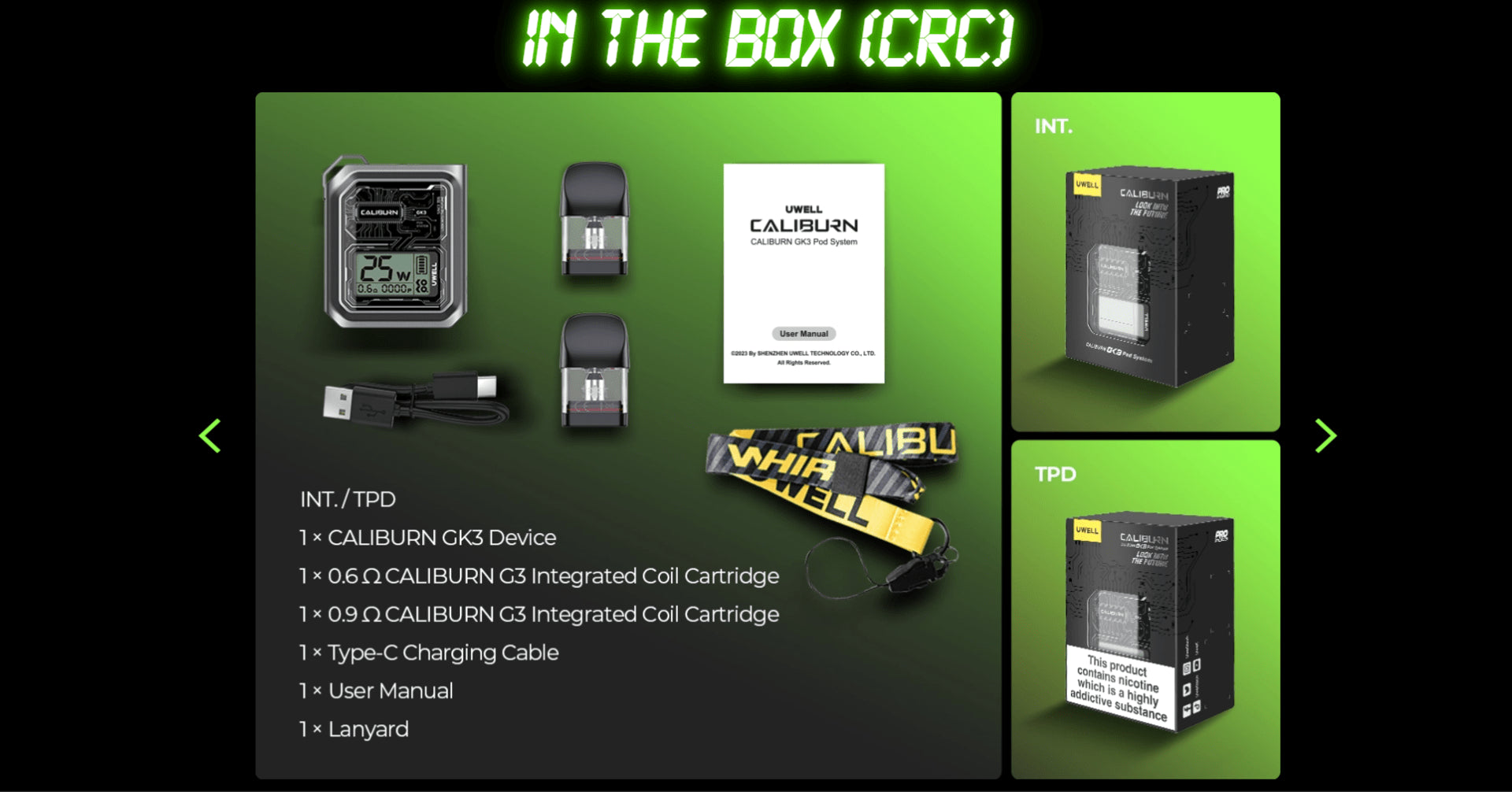- 1 x UWELL CALIBURN GK3 POD KIT [CRC] Device
