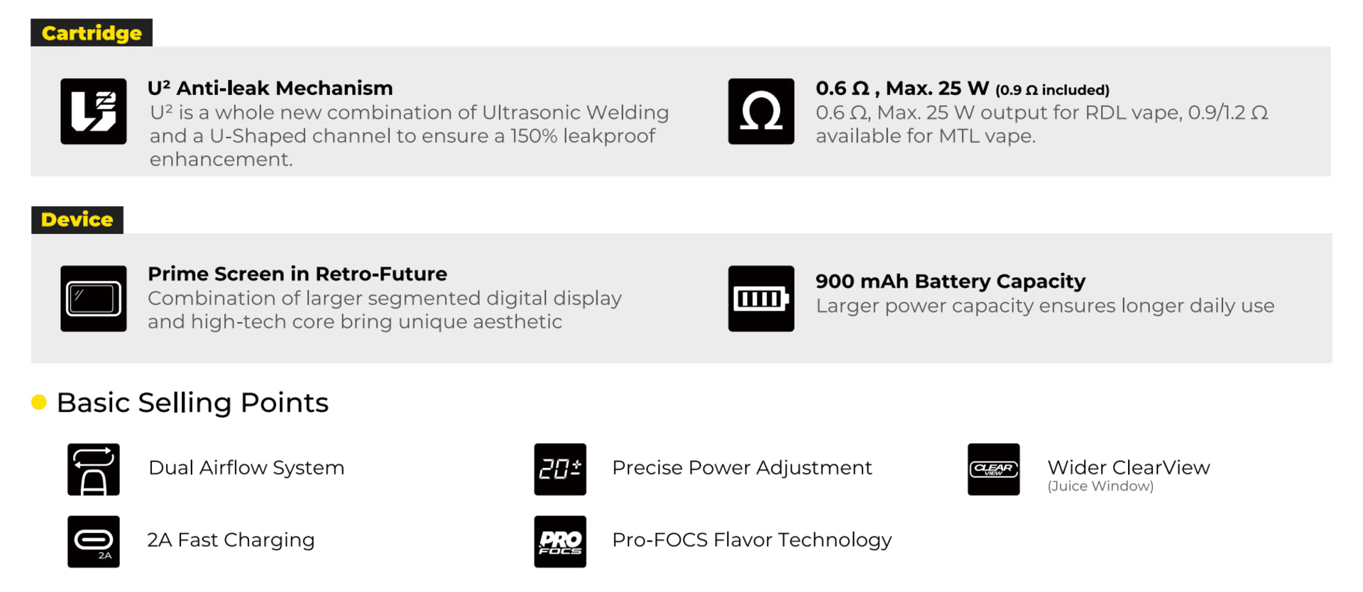 - E-liquid Capacity: 2 mL