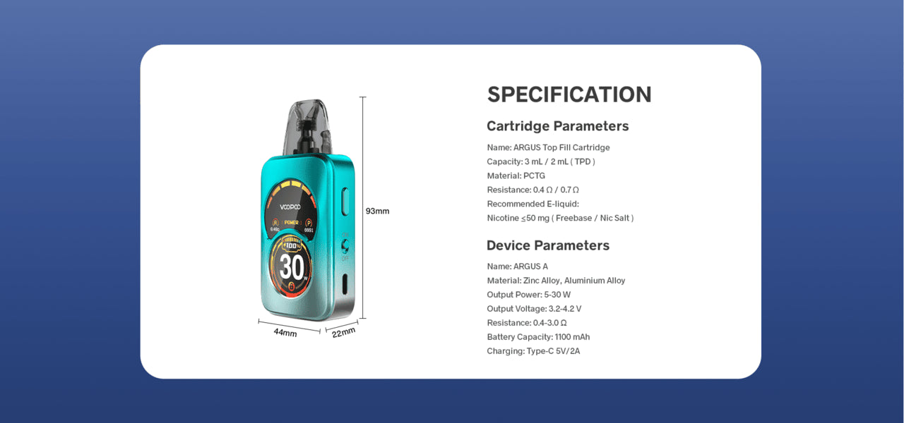 Voopoo Argus A Open Pod Kit 3mL [CRC Version] Specifications: